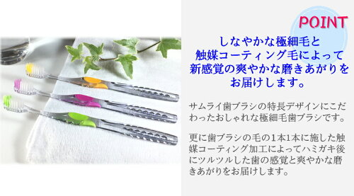 サムライ歯ブラシ【やわらかめ 3本セット(ピンク グリーン イエローそれぞれ1本)】 極細毛 がしっかり届く おしゃれ で使いやすい お水で磨ける 次世代型歯ブラシ 美白 虫歯予防 ツルツルした歯と爽やかな磨きあがり おすすめ プレゼント お買物マラソン