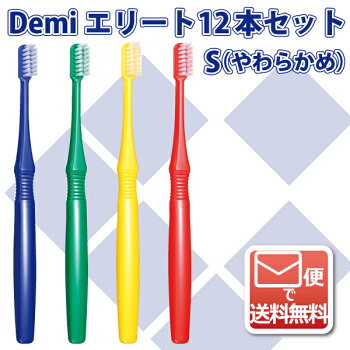 【メール便選択で送料無料】歯科専売品歯ブラシ Demiエリート / フラット毛 / Sやわらかめ 12本入【DemiLine 歯ブラシ】(メール便2点まで)